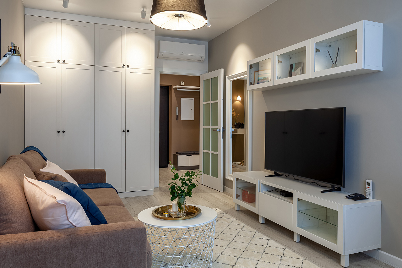 Для уютного жилого пространства были выбраны светильники с тёплым белым цветом свечения.
