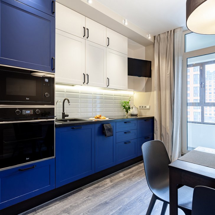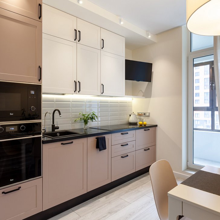 Основное настроение задают встроенные светильники, которые можно вращать, менять направление и угол освещения. Такая гибкость решения и расположение светильников по периметру потолка позволяет настраивать световой сценарий, перераспределять акценты и менять назначение освещения с декоративного на основное и наоборот.