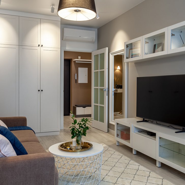 Для уютного жилого пространства были выбраны светильники с тёплым белым цветом свечения.