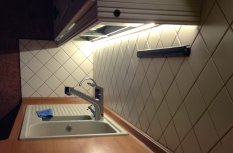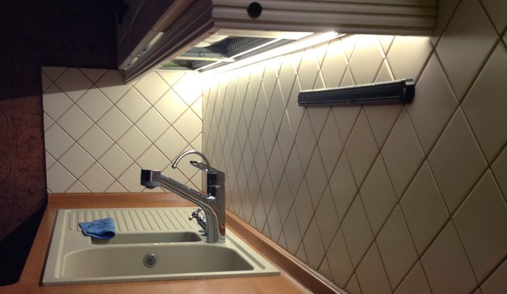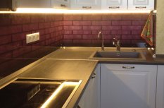 Светодиодная подсветка рабочей зоны стала одним из обязательных элементов освещения на кухне. Дополнительный источник света, который освещает стол, плиту и продукты во время готовки важен, т.к. при стандартном основном освещении тень от корпуса человека падает как раз перед ним, мешая процессу приготовления пищи.