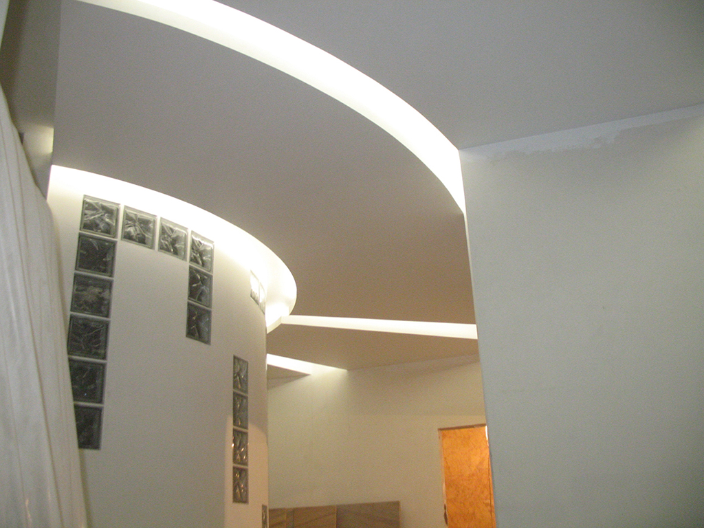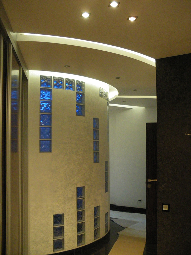 Нашей компанией была организована светодиодная подсветка многоуровневых потолков в квартире.