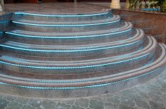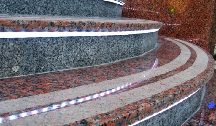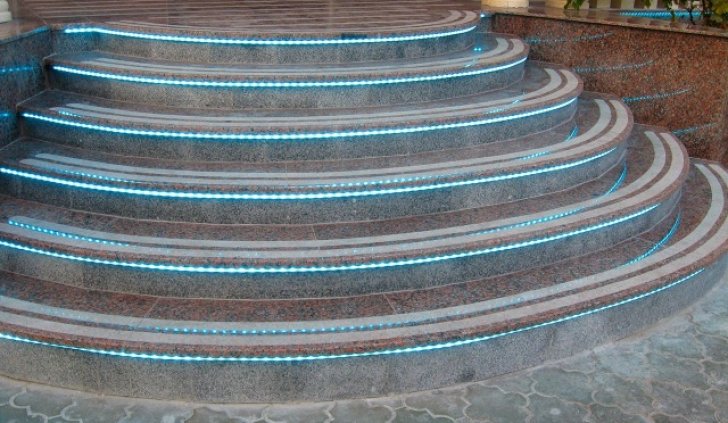 Светодиодная подсветка ступеней не только выполняет декоративную функцию, а также помогает сориентироваться в темноте и не оступиться.