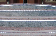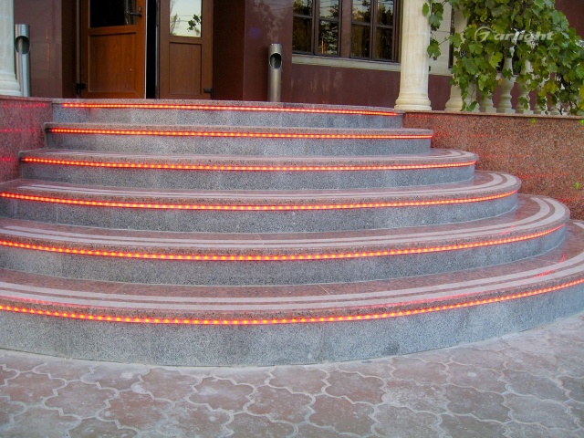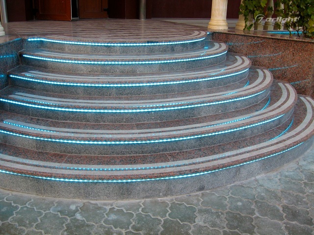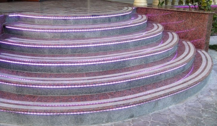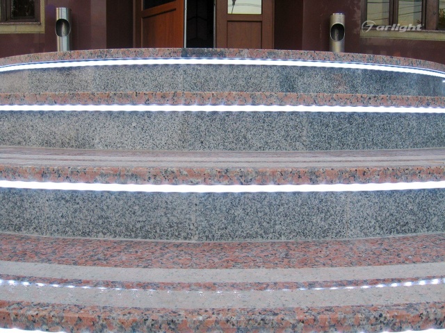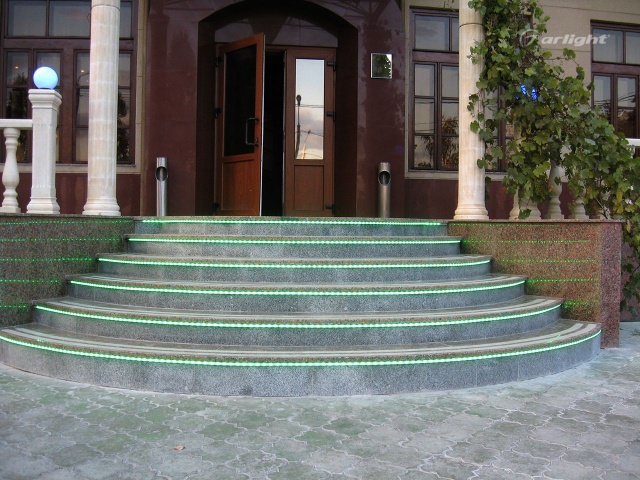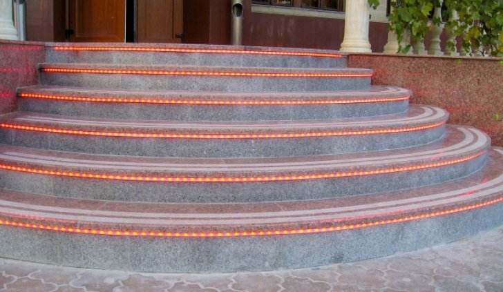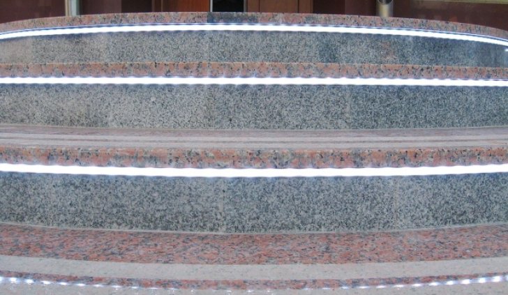 Т.к. ступени находятся на улице, для подсветки выбрана герметичная лента с уровнем пылевлагощащиты IP65. Такой подсветке не страшны практически любые погодные условия.