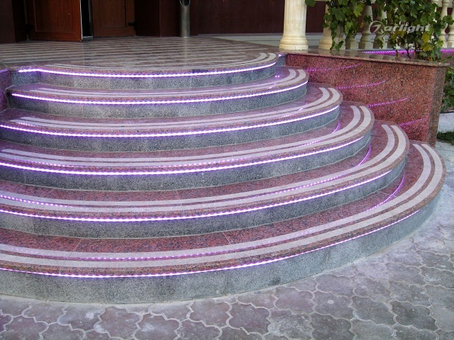 Качественная и надёжная светодиодная подсветка ступеней стала возможна благодаря особому гибкому профилю и герметичной RGB-ленте. Профиль также, как и большинство профилей для светодиодных лент, выполнен из алюминия, но он спроектирован специально для создания подсветки криволинейных форм. Профиль гнётся руками и может согнуться до окружности диаметром 200 мм.