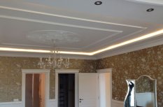 Неоновая подсветка потолка, установленная в этой квартире ранее, уже устарела, потребляла большое количество электроэнергии и потеряла яркость. Поэтому было решено демонтировать старый неон, а на его место установить светодиодную ленту.