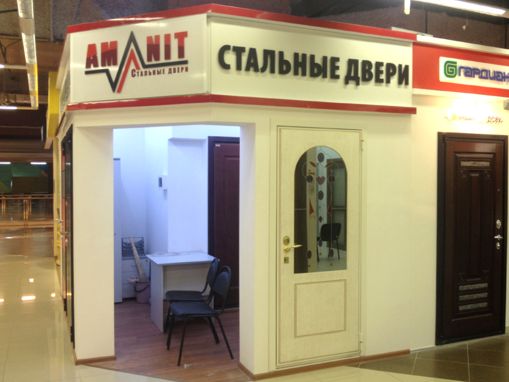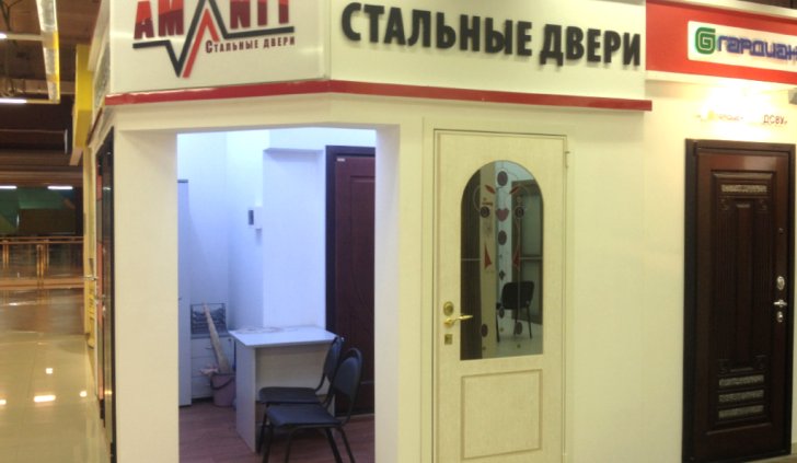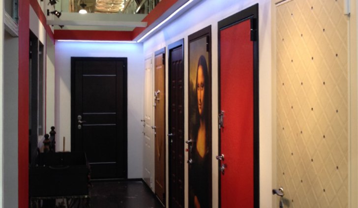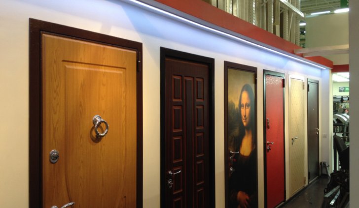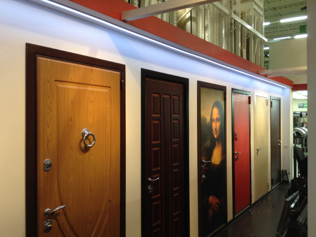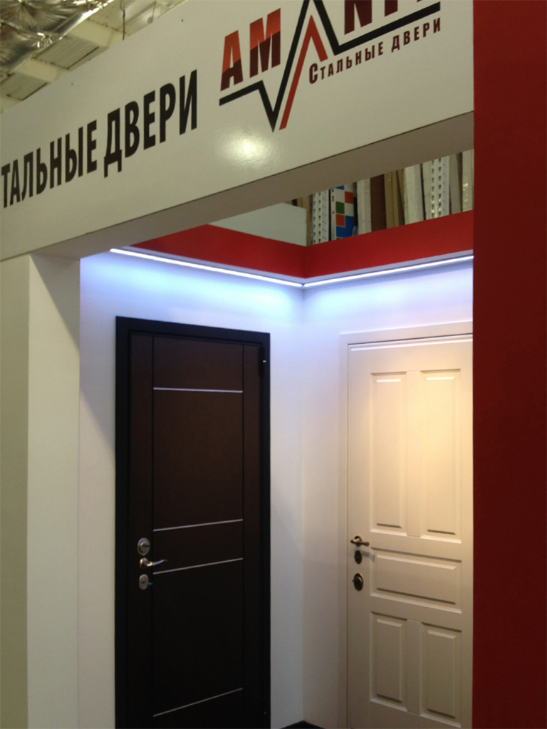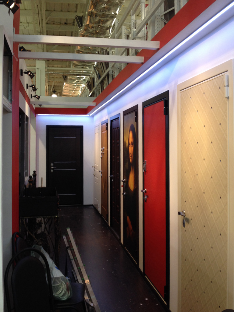 Светодиодная лента использовалась в качестве дополнительного освещения при постройке павильона для продажи стальных дверей.