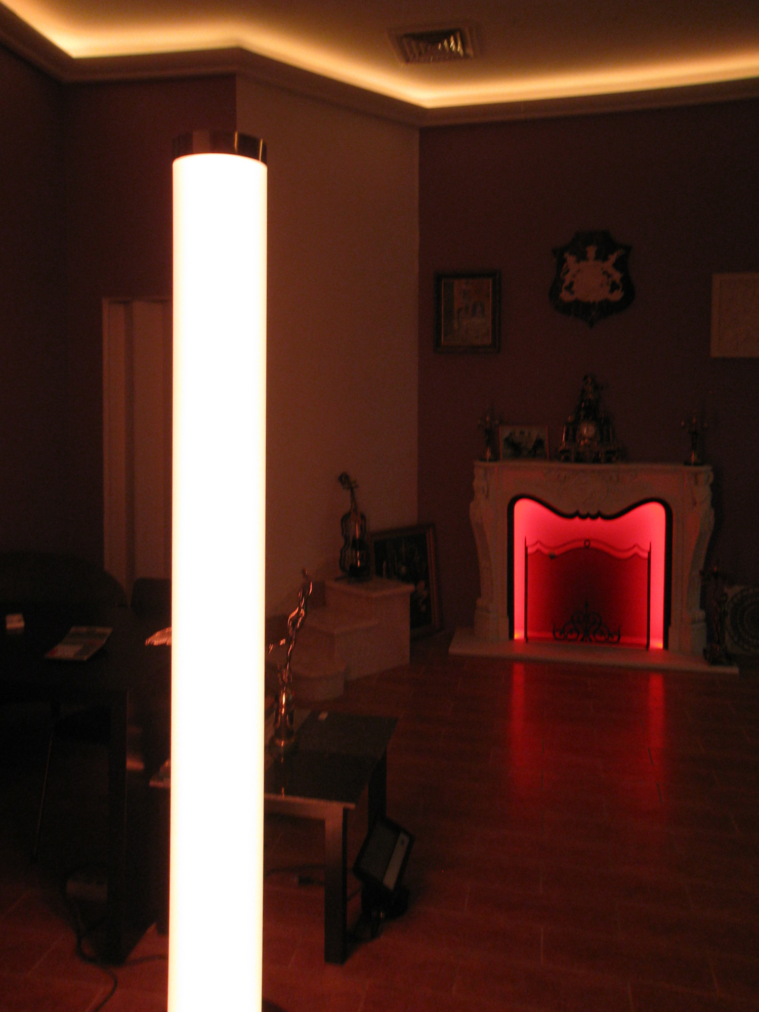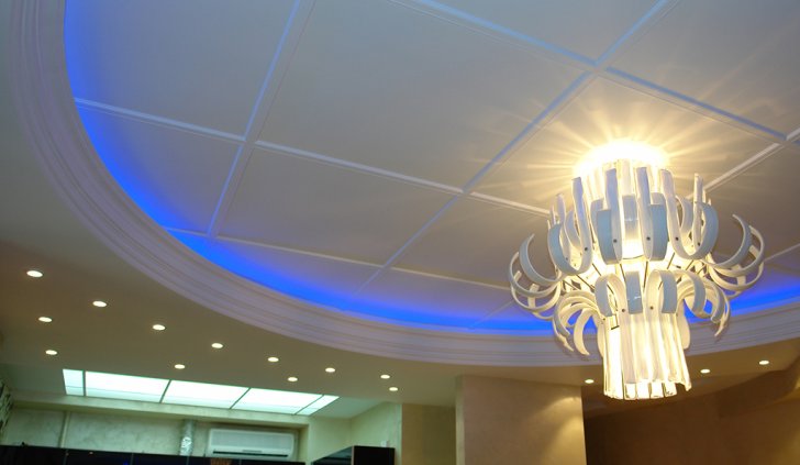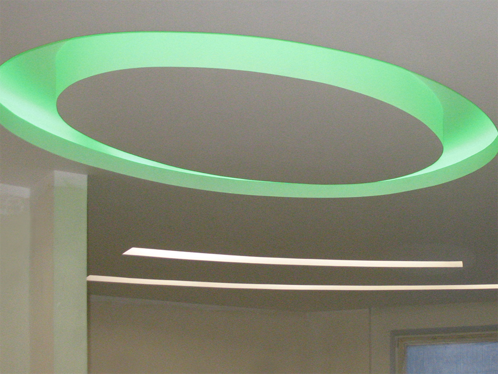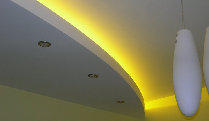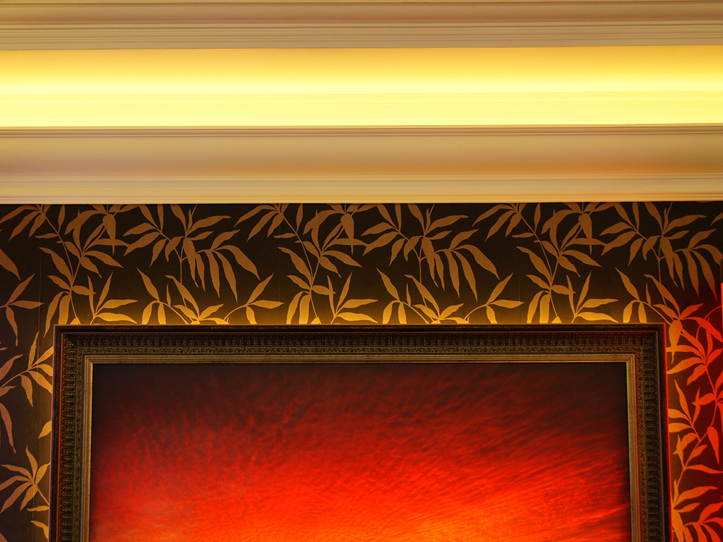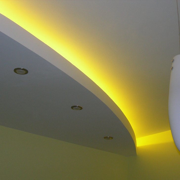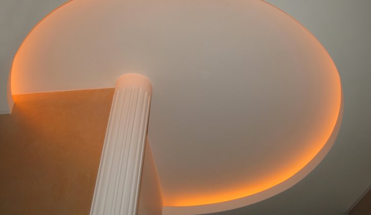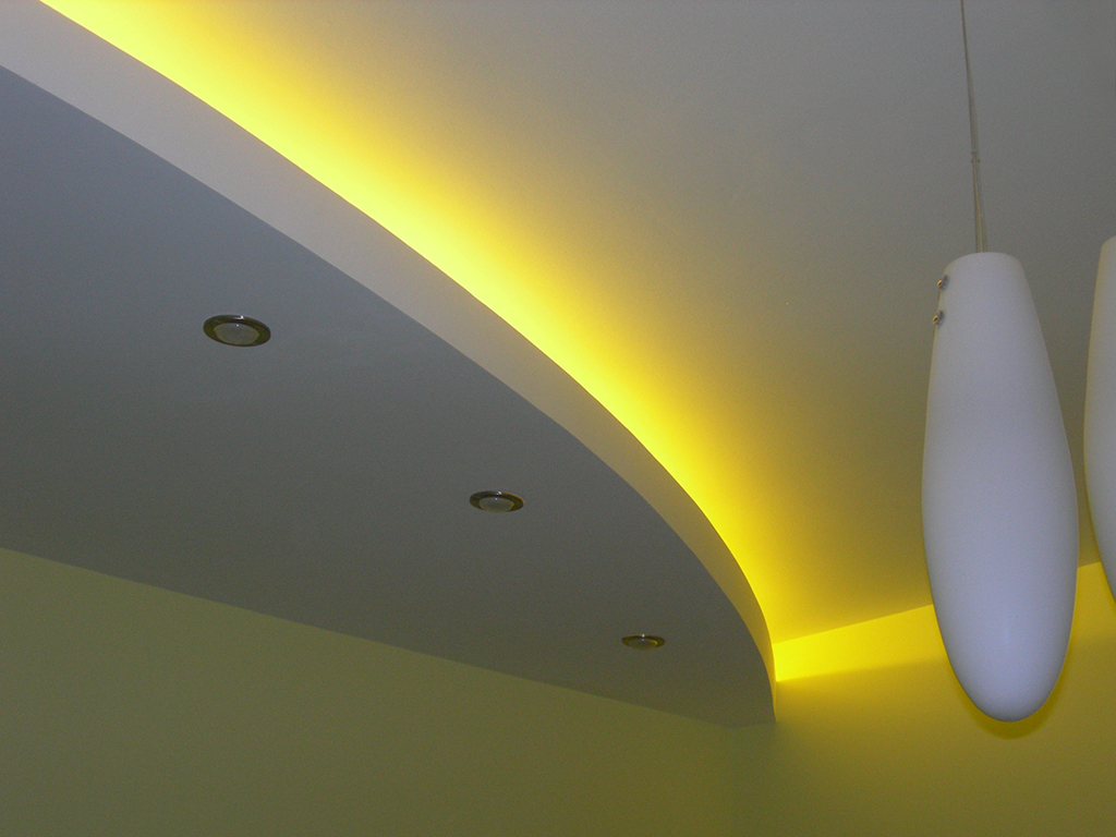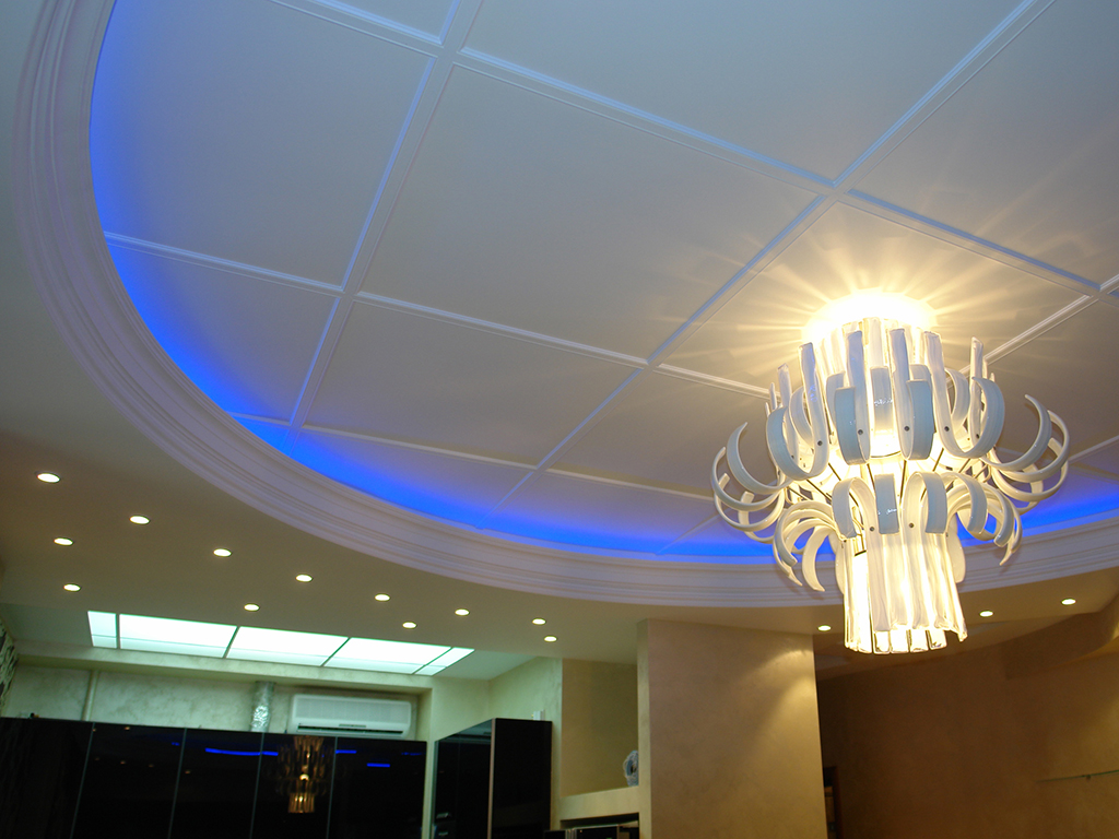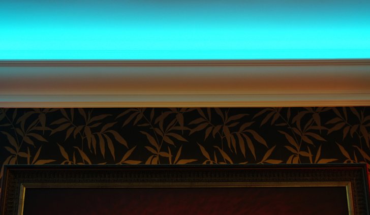 На фотографиях выполненных нами проектов Вы можете увидеть различные типы многоцветной подсветки. Светодиодная RGB лента Arlight устанавливается в многоуровневые потолки и ниши, карнизы, а также декоративные элементы, например, камин. На одном из примеров показан необычный светодиодный светильник.