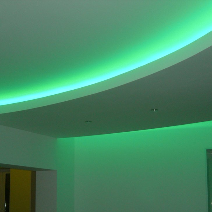 Разделив подсветку на отдельные зоны и используя многозонный пульт управления, можно выбирать цвет в этих зонах независимо друг от друга. Благодаря чему можно получить интересные сочетания цветов.