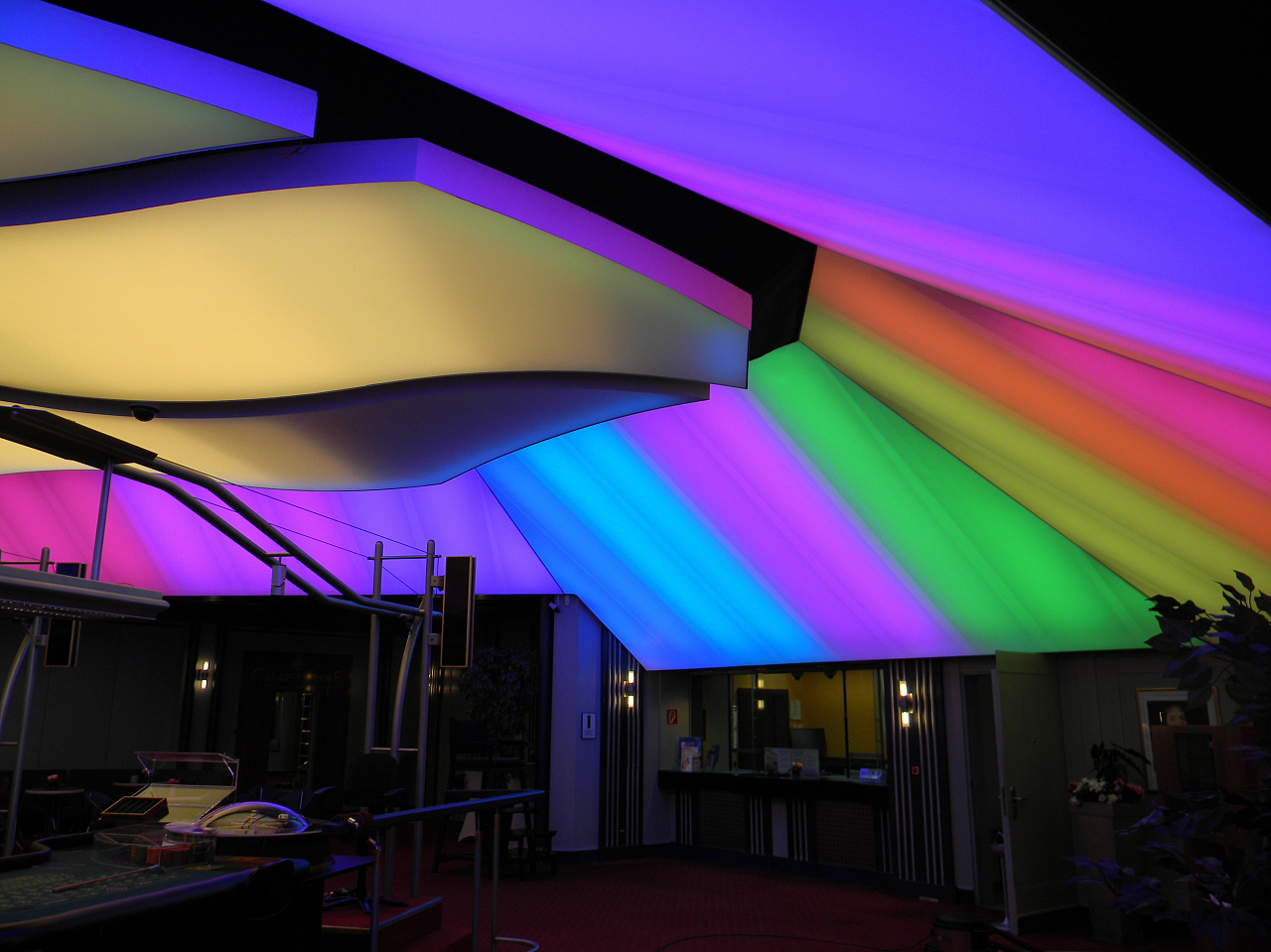 Освещение в казино в баварском курортном городке Гармиш-Партенкирхен осуществлено по индивидуально разработанному проекту. Главным объектом всего светового оформления стали широкие лайтбоксы, напоминающие волны и проходящие по центру потолка. Подсветка лайтбоксов осуществляется с помощью мощных монохромных светодиодных лент.