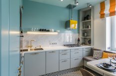 Лаконичные полоски света, кроме функции рабочего освещения, также выполняют роль декора, привнося в интерьер кухни с намёком на ретро тёплую атмосферу.