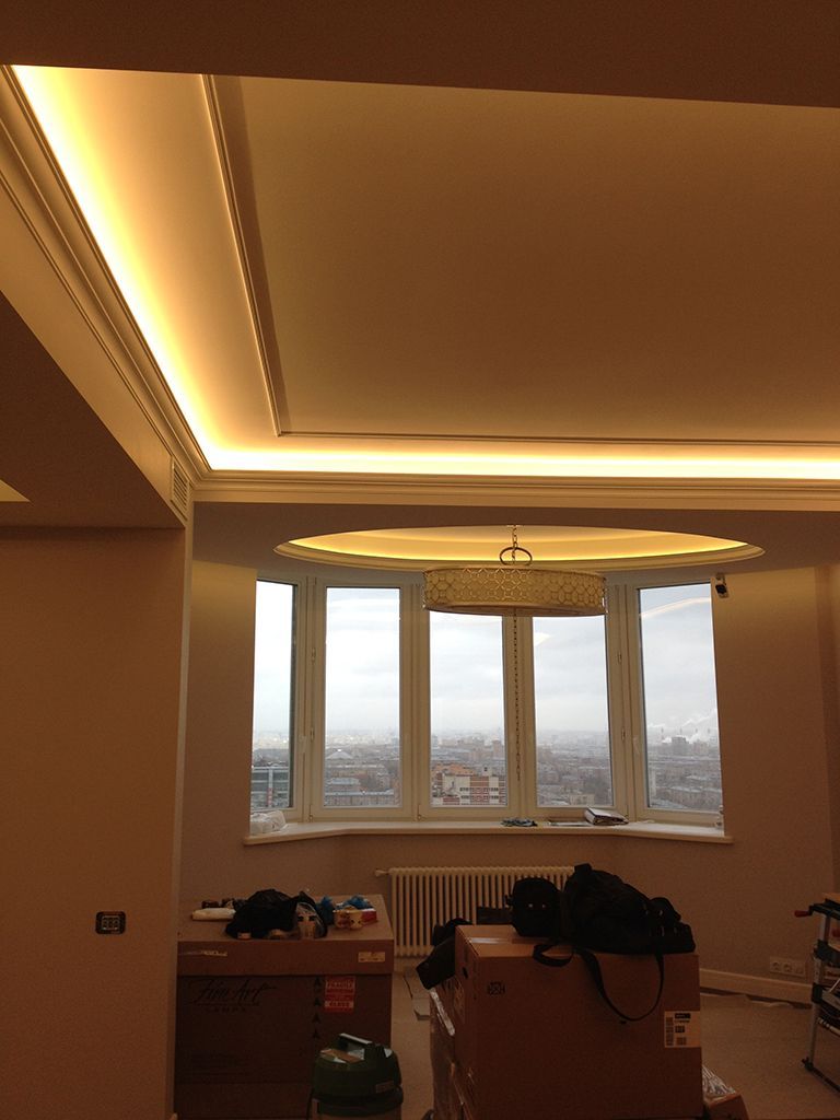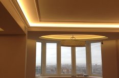 В дизайне просторной и современной квартиры светодиодному освещению отводится одна из основных ролей. Помимо светодиодных светильников в проекте широко применяется лента Arlight. Светодиодная подсветка потолка, стен, ниш, мебели и даже пола позволяет выстраивать большое количество сценариев и выбирать тип и яркость освещения в соответствии с необходимостью или настроением жильцов. Для удобства управления таким количеством оборудования в квартире установили систему "Умный Дом" с технологией Z-Wave.