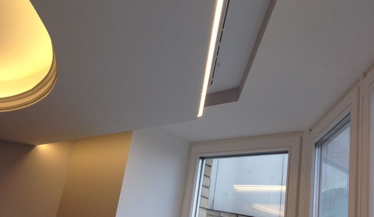 Основная часть светодиодной ленты монтировалась с помощью алюминиевых профилей Arlight, что дало эстетичное оформление ленты и дополнительный теплоотвод, увеличив её срок службы. Сверху профили закрыты матовыми пластиковыми экранами, защищающими ленту от повреждений, а также рассеивающими свет, благодаря чему создаётся красивый эффект световых линий.
