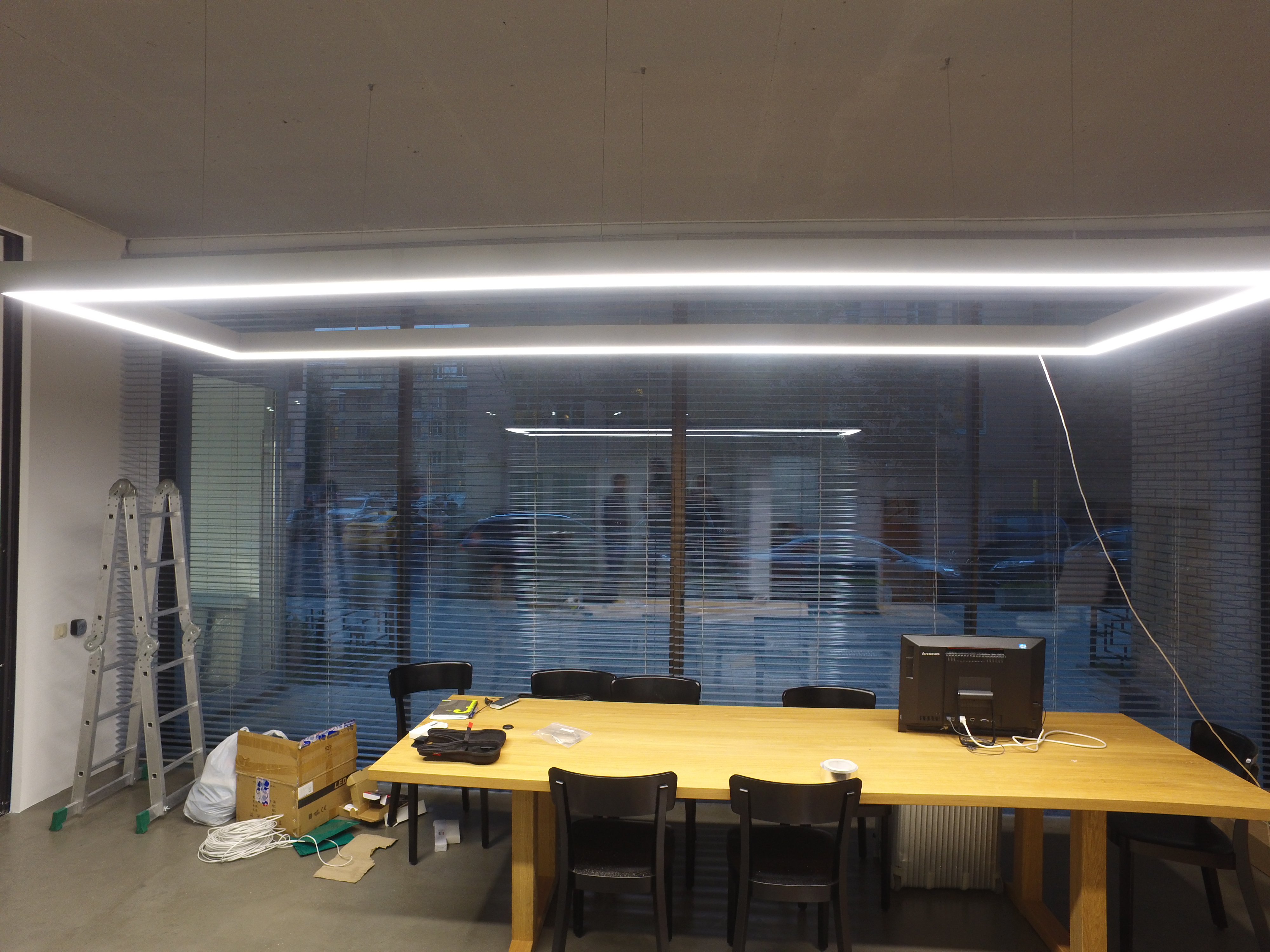 Arlight серии S-LUX и светодиодной ленты. Конструкция использованного в этом проекте профиля допускает размещение источника питания внутри самого профиля, что упрощает монтаж всего светильника. Для получения более мягкого свечения светодиодная лента закрывается матовым экраном.
