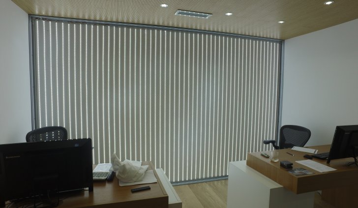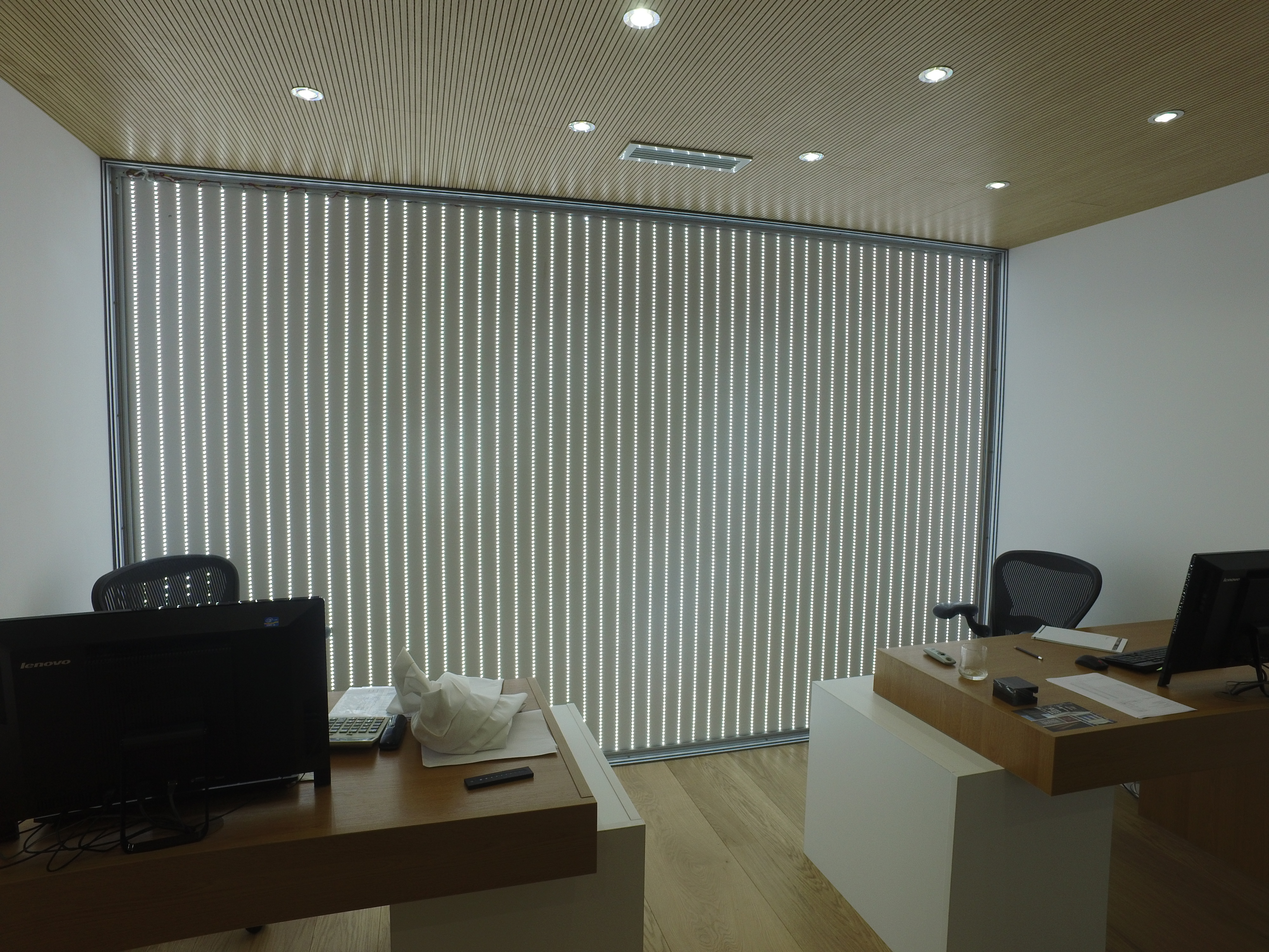 Для корректной установки светопропускающего полотна, специалистами был произведён расчёт модели ленты и расстояния, на котором её следует наклеить на стену. Далее была сделана разметка для монтажа, подготовлена поверхность стены, произведена наклейка ленты и установка светопропускающего полотна. Для настройки яркости освещения, систему подключили к усилителям и диммеру.