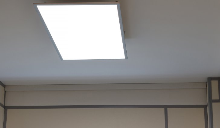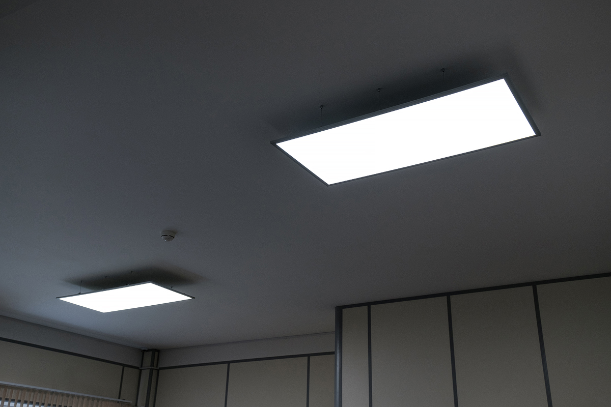 Это позволило создать композиции из светильников, дополнительно зонировать пространство, а также соблюсти все требования по созданию здоровых и комфортных условий труда, учитывая нормативы по освещённости, чему дополнительно способствовала низкая пульсация светодиодных лент, используемых в панелях.