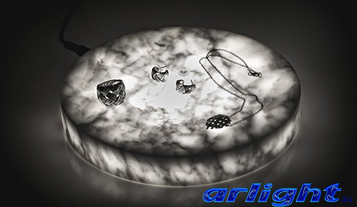 Подчеркнуть натуральную красоту этого камня способны светодиоды. Как? - Покажем в данном проекте, в реализации которого участвовала наша компания. Светодиодная подсветка была установлена в небольшом мраморном пьедестале.