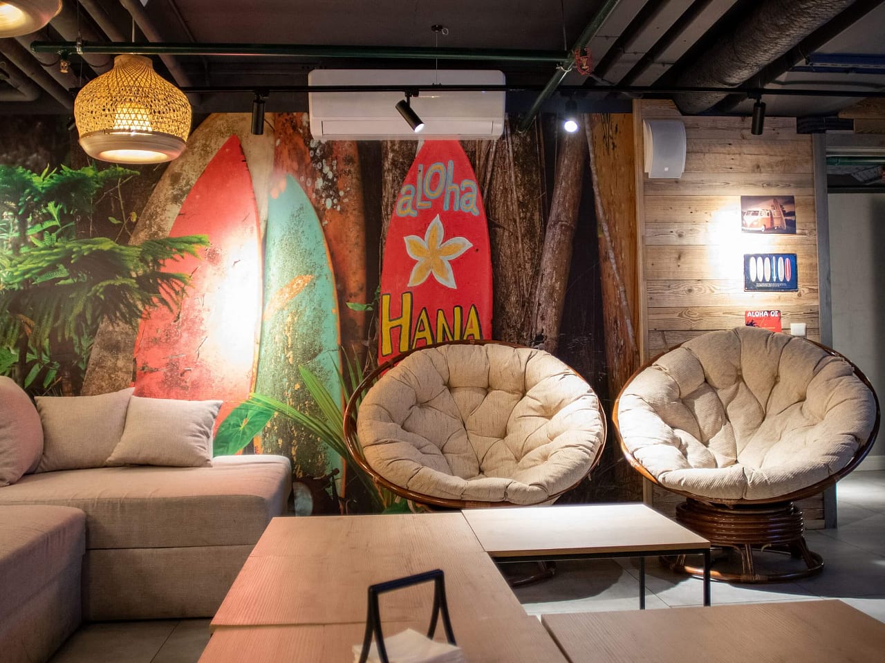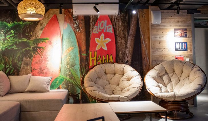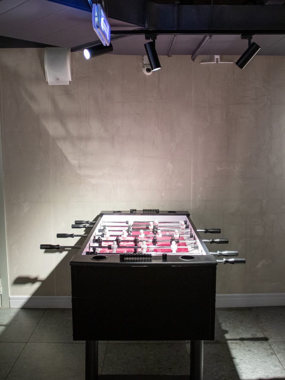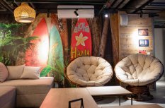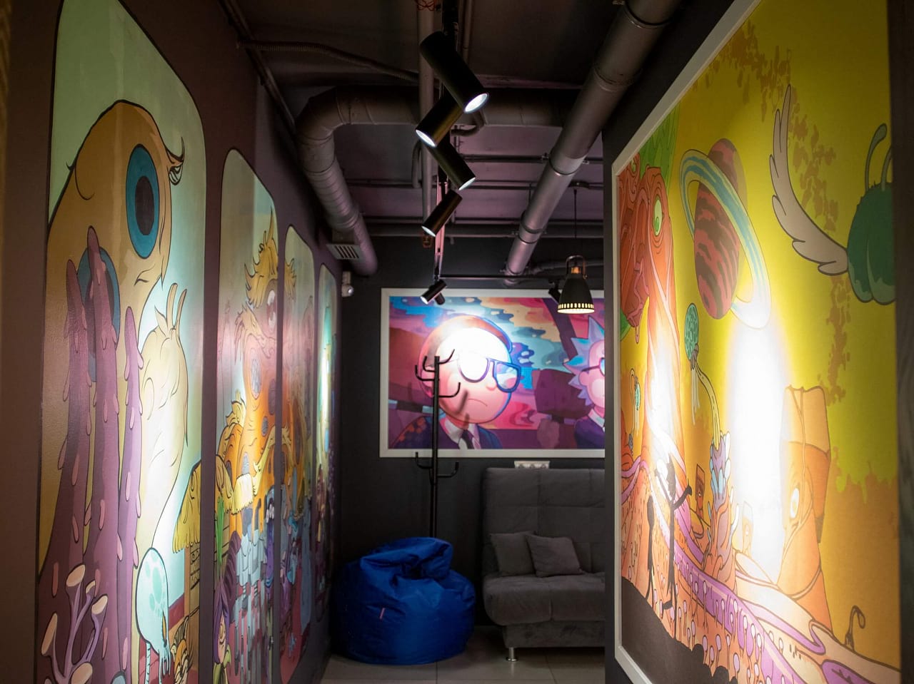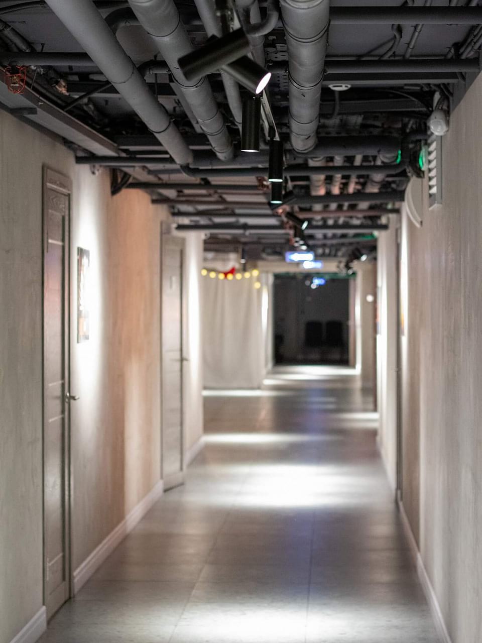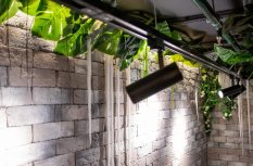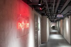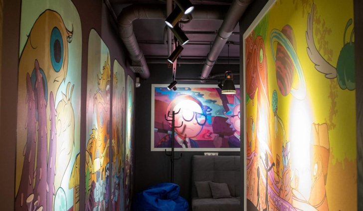 Для освещения креативного пространства Party time, выполненного в стиле лофт с яркими акцентами, использовалось универсальное решение – трековые светильники. На фоне тёмных потолков чёрные треки не особо выделяются, их задача дать качественный свет и дополнить интерьер, а не солировать.
