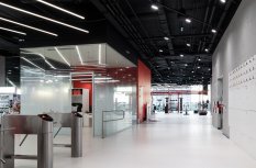 Уникальный дизайн пространства в сочетании с многообразием потолочного освещения и оригинальной декоративной подсветкой. Невероятные гигантские потолочные светильники, линейные и дизайнерские подвесные светильники. Для создания проекта использовано более 30 наименований светодиодного оборудования. Масштабность, красота и легкость — так можно охарактеризовать это особенное пространство, в котором гармонично переплетены линии света и круглые диски светильников.