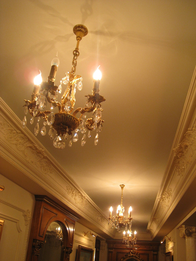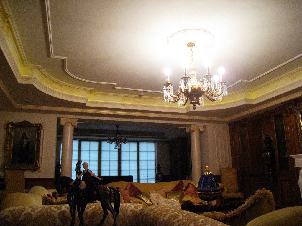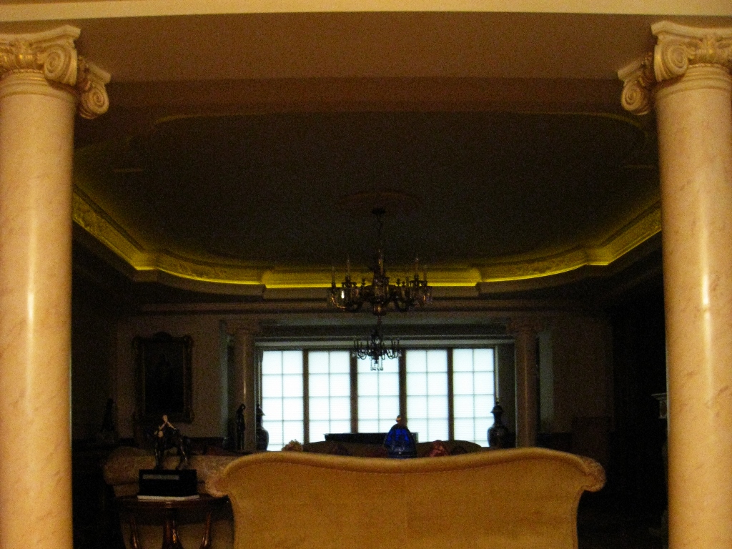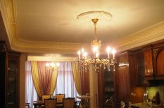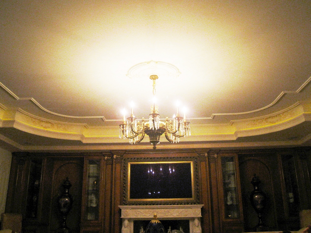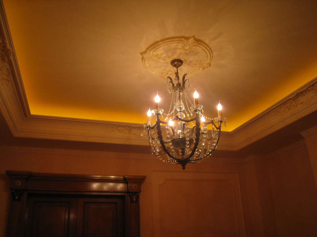 Совмещение интерьера выполненного в классическом стиле и современного светодиодного оборудования, дает интересный эффект. Массивные детали позволяют удобно расположить необходимое оборудование, а скрытая подсветка позволяет добавить легкость и объем в монументальную классику. Применение светодиодных ламп в люстрах с хрусталем дает невероятный эффект многократного отражения в гранях кристаллов. Проект выполнен с применением светодиодного оборудования торговой марки Arlight.
